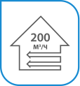 Воздухообмен до 200 м3 в час, обеспечивающий комфортное пребывание до 7 человек в помещении площадью до 75 м².